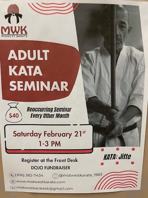 Adult Kata Seminar…Did you know?? Posted on February 7, 2026February 7, 2026 by SKA There is an adult Kata seminar every month at Midwest Karate in Saskatoon, contact the Dojo for more details.